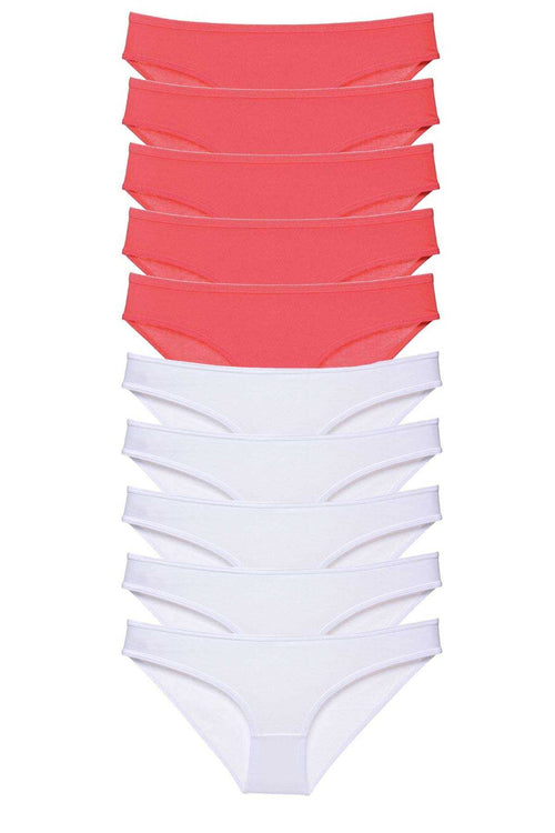 10 adet Eko Set Likralı Kadın Slip Külot Fuşya Beyaz