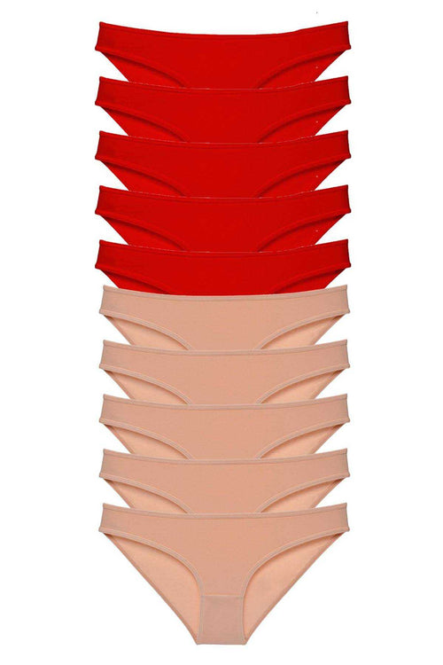 10 adet Eko Set Likralı Kadın Slip Külot Kırmızı Ten