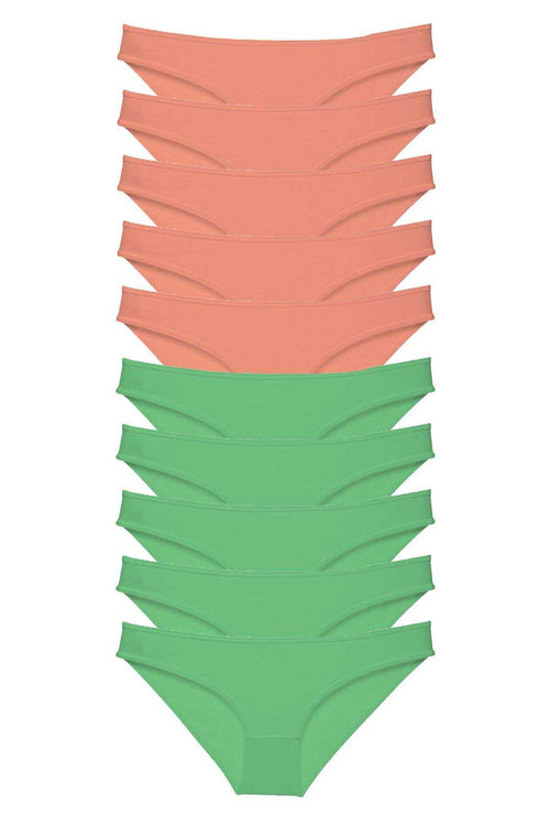 10 adet Eko Set Likralı Kadın Slip Külot Pudra Yeşil